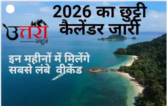 देहरादून: उत्तराखंड में वर्ष 2026 के लिए छुट्टियों की पूरी तस्वीर अब साफ हो गई है। शासन द्वारा जारी कैलेंडर के अनुसार इस साल सार्वजनिक अवकाश, राज्यपाल द्वारा घोषित अवकाश और निर्बंधित अवकाश — तीन अलग-अलग श्रेणियों में छुट्टियां तय की गई हैं। 2026 में छुट्टियों की पूरी लिस्ट देखनें के लिए खबर को नीचे तक पढ़ते रहे।