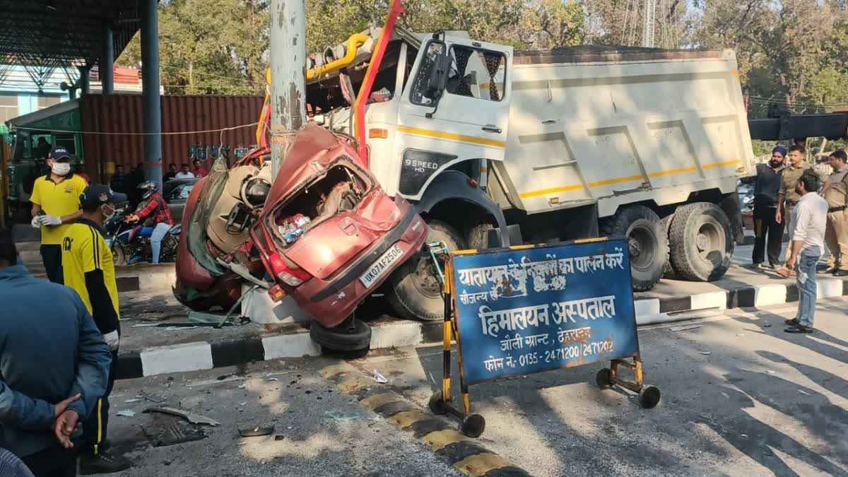उत्तराखंड में सड़क हादसों का सिलसिला थमने का नाम नहीं ले रहा है। राजधानी देहरादून के डोईवाला क्षेत्र में लच्छीवाला टोल टैक्स के पास आज सुबह एक दर्दनाक दुर्घटना हुई, जब एक तेज रफ्तार डंपर ने तीन गाड़ियों को टक्कर मार दी। हादसा इतना भयावह था कि एक कार पूरी तरह से डंपर के नीचे दब गई, जिसमें सवार दो लोगों की मौके पर ही मौत हो गई। घटना के बाद वहां अफरातफरी का माहौल बन गया और लोग सहम गए।
