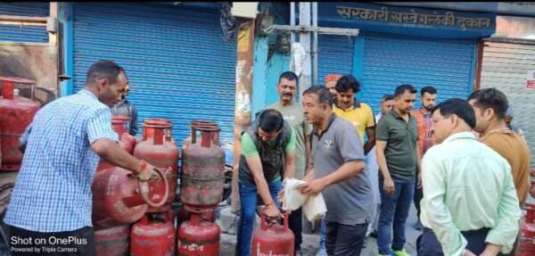 Almora:: Distribution of gas cylinders took place in the main market for the second Sunday also.