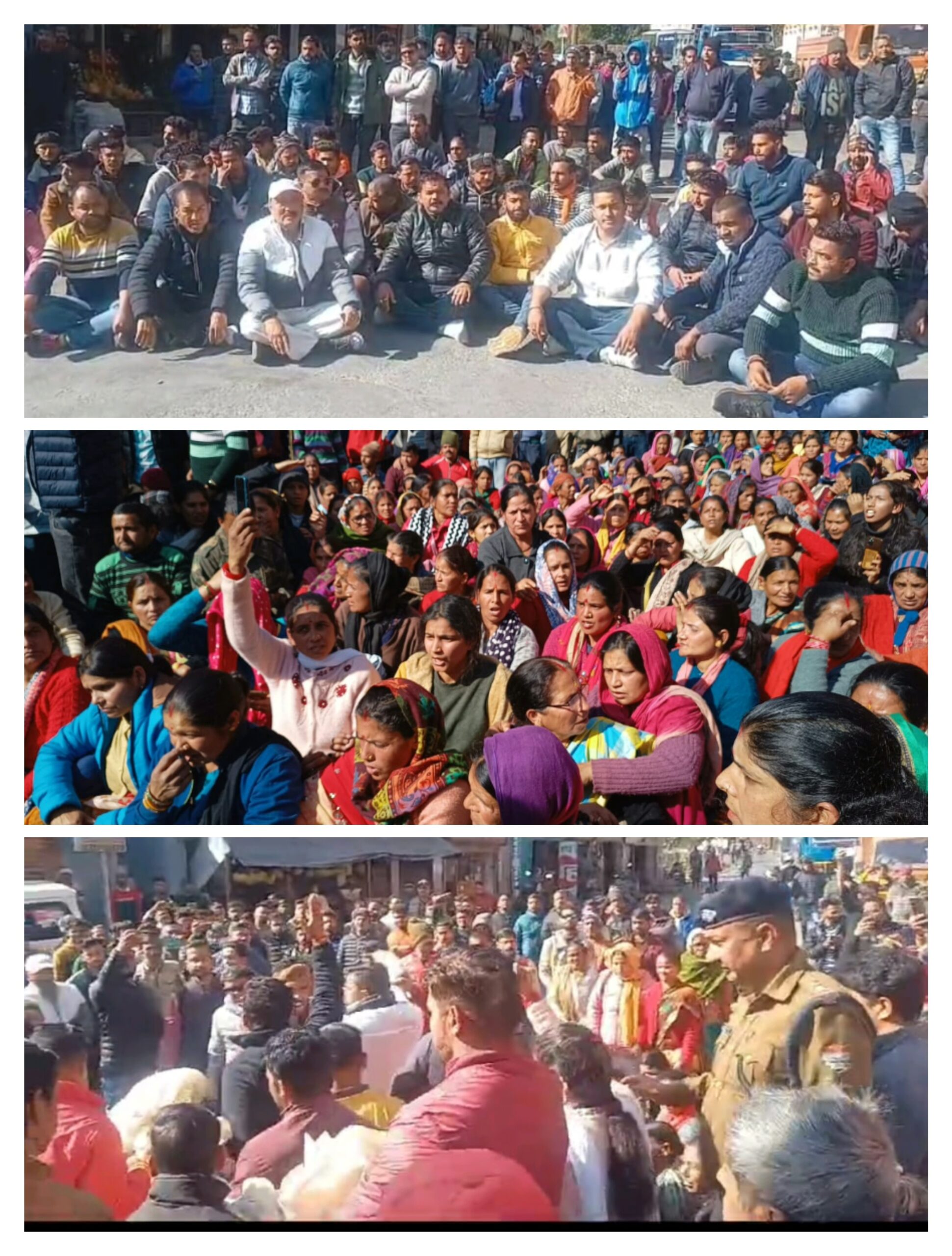भीमताल— युवती के शव को चौराहे में रखकर लगाया जाम