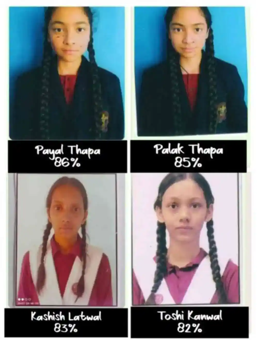 न्यू मॉडर्न पब्लिक स्कूल की पलक थापा ने 85 प्रतिशत अंक लेकर स्कूल में दूसरा, कशिश लटवाल ने 83 प्रतिशत अंक लेकर स्कूल में तीसरा और तोषी कनवाल ने 82 प्रतिशत अंक लेकर स्कूल में चौथा स्थान प्राप्त किया है।