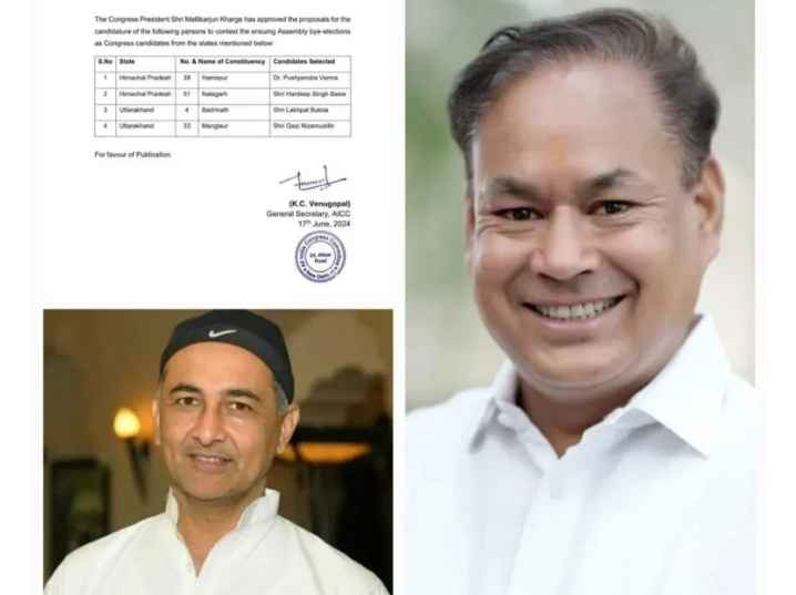 कांग्रेस ने उत्तराखंड में दो विधानसभा के उपचुनाव को लेकर अपने प्रत्याशियों के नाम जारी कर दिए हैं। उत्तराखंड की दो विधानसभा सीटों पर उपचुनाव होने वाले हैं जिनको लेकर कांग्रेस ने अपने प्रत्याशियों के नाम बता दिए हैं।