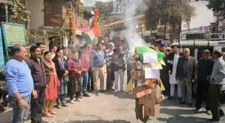 अल्मोड़ा: क्वारब मार्ग की बदहाली को लेकर नगर कांग्रेस कमेटी द्वारा केंद्रीय राज्य मंत्री और भाजपा का पुतला फूका ।