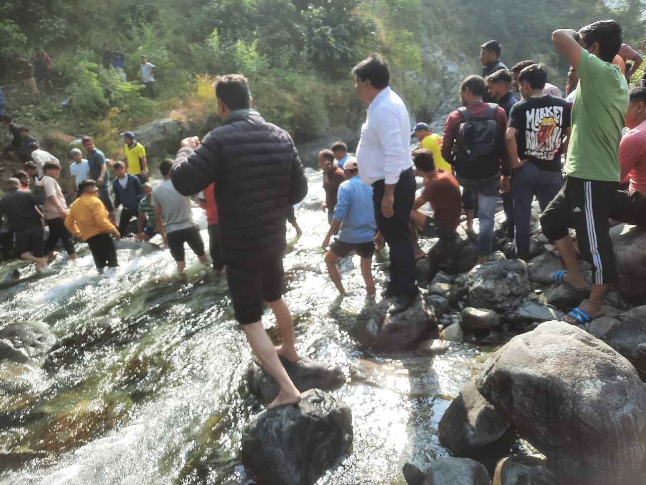 यात्री बस कूपी के पास करीब 100 मीटर गहरी खाई में गिर गई है।