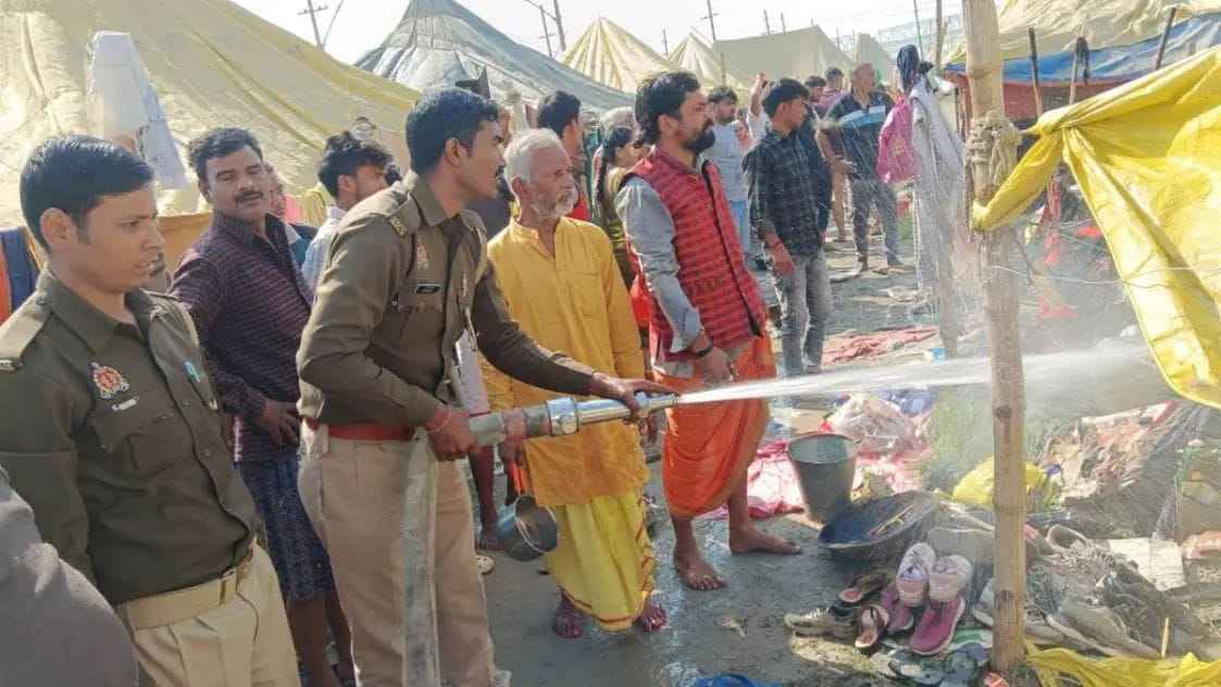 घटना सेक्टर 19 के वट माधव मार्ग स्थित ओम प्रकाश पांडे सेवा संस्थान के शिविर की है, जहां कर्मा घूरपुर निवासी राजेंद्र जायसवाल कल्पवास कर रहे थे। जानकारी के अनुसार, रविवार सुबह चाय बनाते समय सिलेंडर से अचानक गैस लीकेज होने लगी, जिससे आग भड़क गई। देखते ही देखते आग ने पूरे टेंट को अपनी चपेट में ले लिया, जिससे वहां अफरातफरी मच गई।