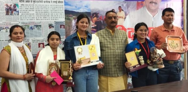 इन्टरमीडिएट में सर्वोच्च अंक प्राप्त करने वाली कॉमर्स की छात्रा राशि भाकुनी सहित अन्य मेधावी छात्राओं को पूर्व दर्जा मंत्री कर्नाटक ने किया सम्मानित