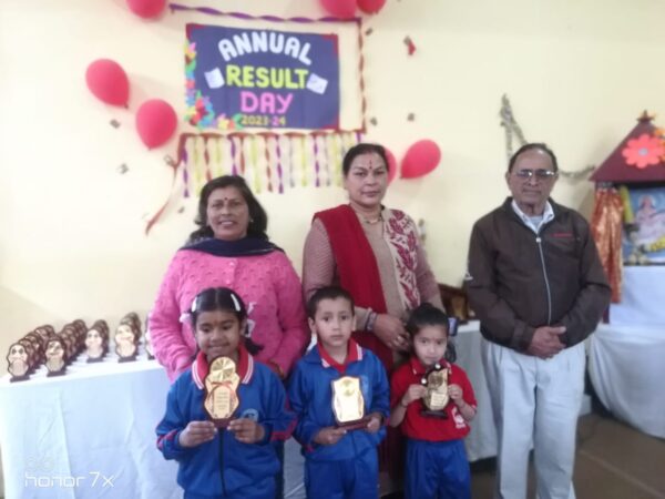 प्रधानाचार्य पूनम जोशी ने बताया कि विद्यालय का परीक्षा फल शत प्रतिशत रहा। पूर्व प्राथमिक वर्ग में पल्लवी पांडे तथा रिशांक जोशी ने 100% अंक पाकर विद्यालय टॉप किया ,प्राथमिक वर्ग में कक्षा द्वितीय के हार्दिक नगरकोटी ने विद्यालय में प्रथम स्थान प्राप्त किया। पल्लवी पांडे,भाविका अधिकारी,आर्यन कोहली,दिव्यांशु बिष्ट,गौरी जोशी,इशिता कांडपाल, प्रियांशी बिष्ट,पार्थ नैलवाल,साक्षी बिष्ट,हार्दिक नगरकोटी,अंश वर्धन,हार्दिक मिश्रा,मयंक बिष्ट,दीपक चिलवाल,नव्या दानू, शिवांश जोशी,युवराज कुमार,नैंसी नयाल,युवराज पलनी ने अलग-अलग वर्गों में प्रथम स्थान प्राप्त किया।