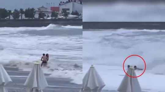The couple could be seen going to the water's edge when massive waves… pic.twitter.com/zEaFXoDjkg