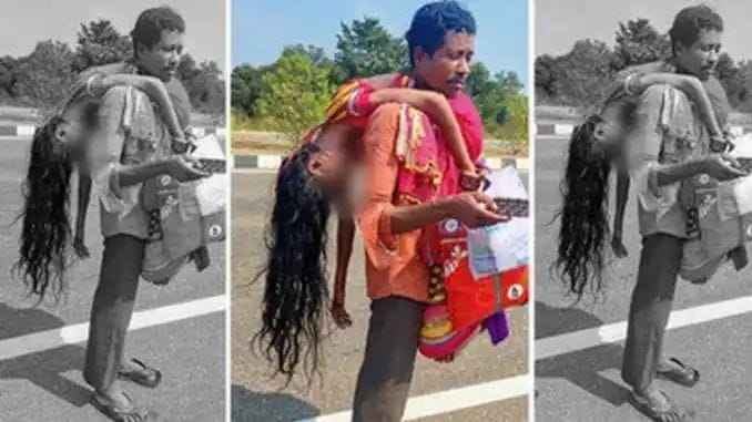 बताया जा रहा है महिला की बुधवार को पड़ोसी आंध्र प्रदेश में एक अस्पताल से लौटते वक्त एक ऑटो रिक्शा में मौत हो गई थी जिसके बाद सामुलु पांगी नामक यह व्यक्ति अपनी पत्नी ईदे गुरे को कंधे पर ले जाने पर मजबूर हो गया।